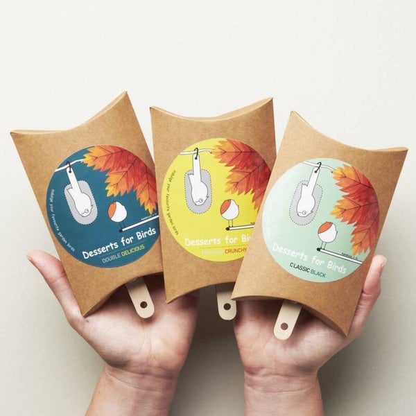 Desserts for Birds is een ‘ijsje’ gemaakt met verschillende soorten zaden en is pure verwennerij voor vogels! Hang Desserts for Birds aan je balkonrand, in de boom of aan de muur en geniet nog meer van de natuur om je heen. Desserts for Birds is verkrijgbaar in verschillende smaken