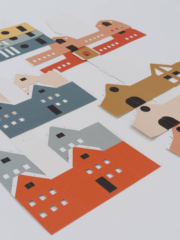 SAMLET is een dorpje van 12 heel diverse en kleurrijke huisjes: traditioneel, landelijk, knus en oud maar ook nieuw, urban en modern. Het zijn echte prefab huisjes: voorgestanst, voorgerild, en de raampjes zijn er al uitgebroken. Zelfs de muren binnen zijn al voorzien van behang in een hippe botanische zwart wit print. Het enige dat jij als huizenbouwer nog hoeft te doen is de muren en de daken op de aangegeven plek op elkaar lijmen.